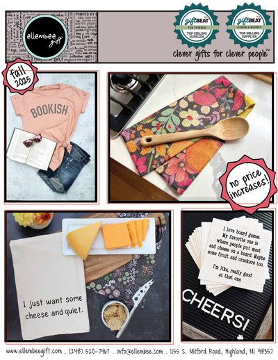 Our funny gift products can be found here at www.ellembeegift.com, and in over 4,000 boutiques throughout the US, Canada, and Europe.